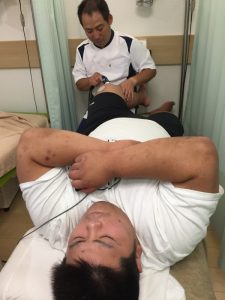 ハイボルテージコンビネーション機器は痛みを早く取りたい方におすすめの治療法になっており、毎日厳しい練習を行っている相撲部の選手さんにはかなり有効です。