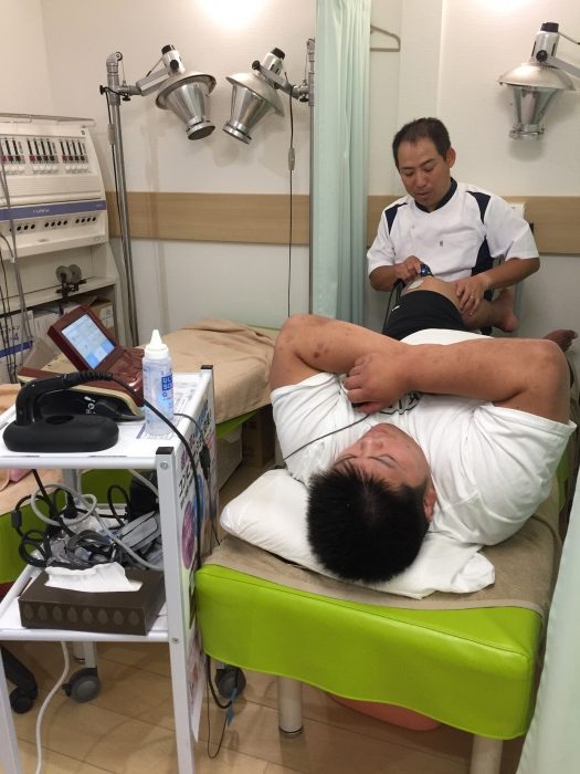 ハイボルテージコンビネーション機器は痛みを早く取りたい方におすすめの治療法になっており、毎日厳しい練習を行っている相撲部の選手さんにはかなり有効です。