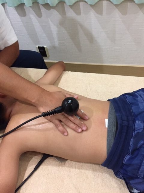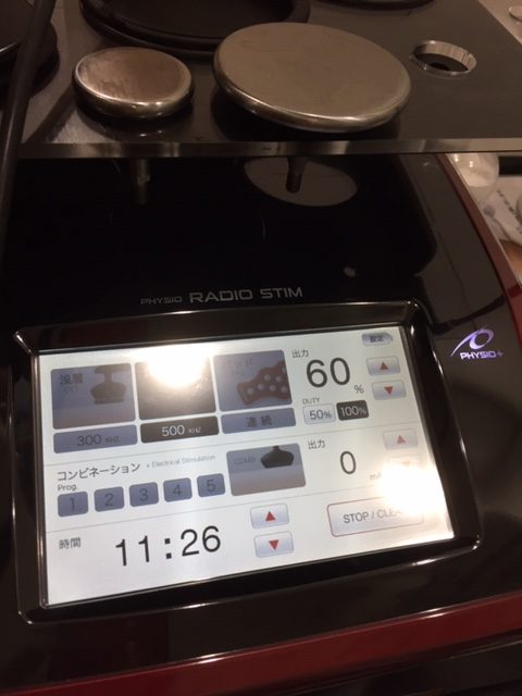 痛みの除去と肩の動きの改善のためにラジオ波温熱機器(ラジオスティム)での治療を15分間行いました。