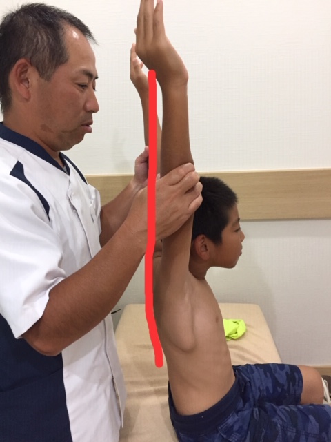 よく投げるので特に右肩が肩甲骨からの動きが悪くなっているのが写真からもわかります。